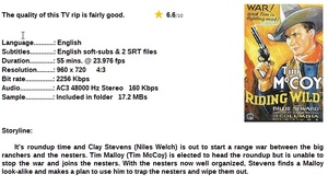Summary: It's roundup time and Stevens is out to start a range war between the big ranchers and the nesters. Tim Malloy is elected to head the roundup but is unable to stop the war and joins the nesters. With the nesters now well organized, Stevens finds a Malloy look-alike and makes a plan to use him to trap the nesters and wipe them out.