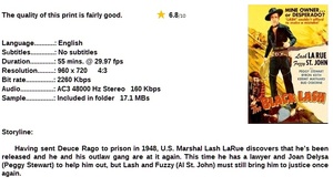 Summary: Having sent Deuce Rago to prison in Frontier Revenge (1948), Lash finds he's out and his outlaw gang are at it again. This time he has the Lawyer Leonard and Joan to help him out and Lash and Fuzzy must bring him in once more.